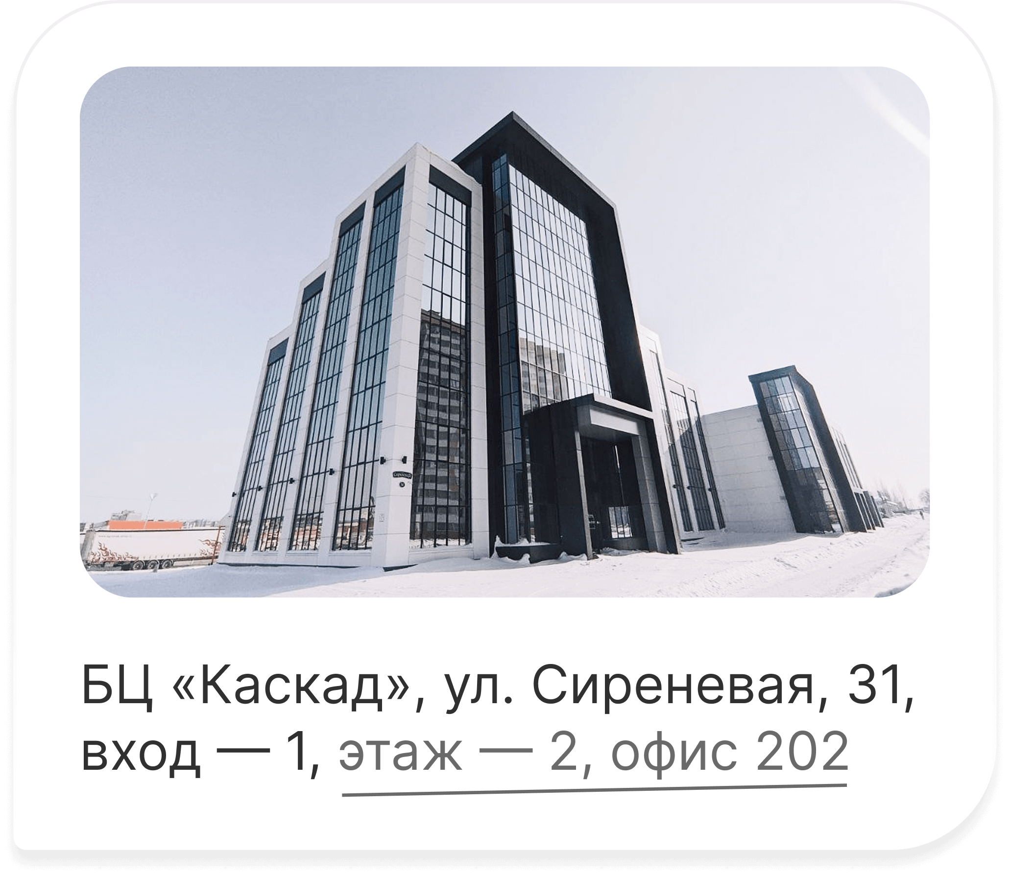 БЦ «Каскад», ул. Сиреневая, 31, вход — 1,